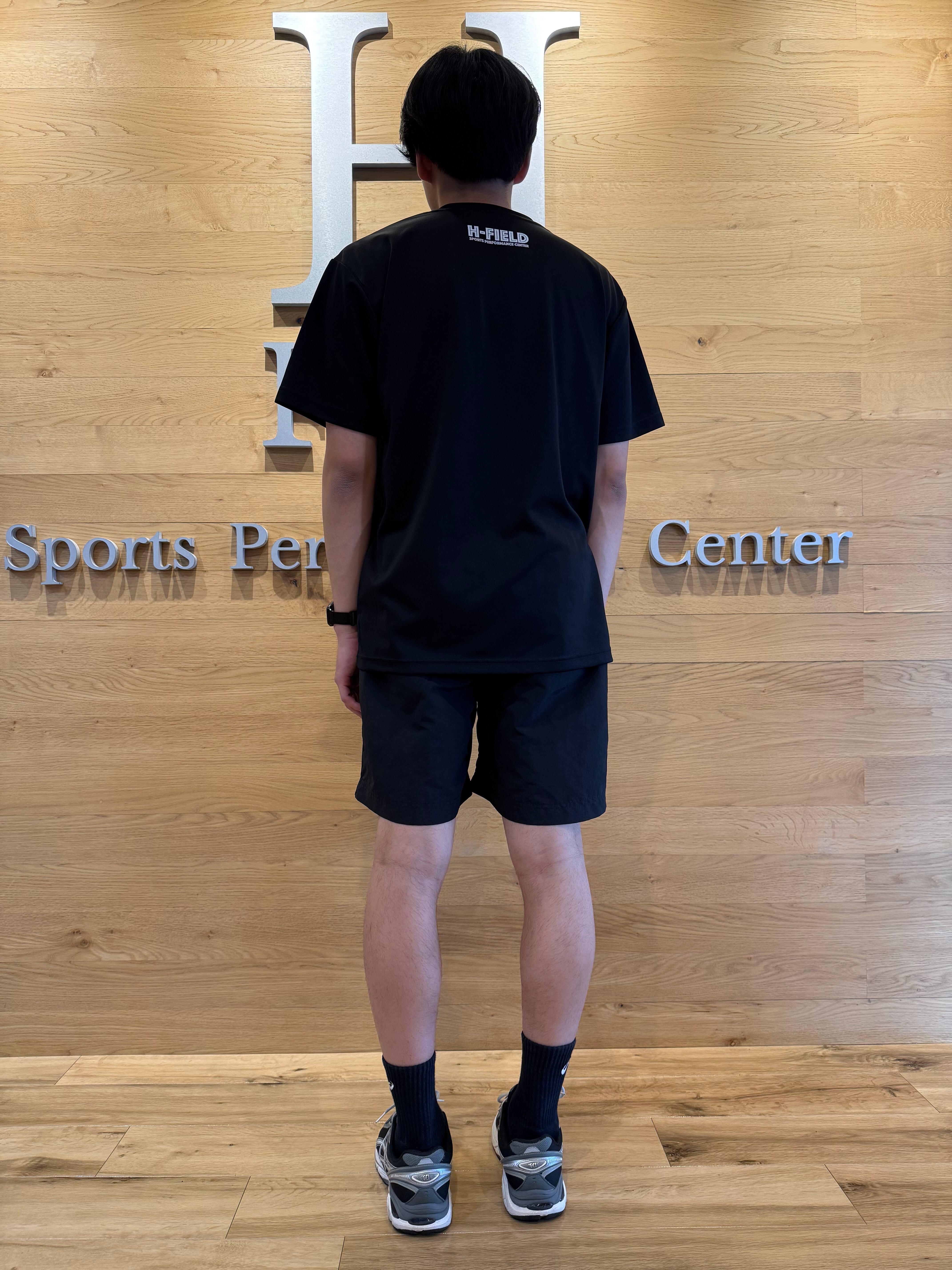・左大腿下部にH-Fieldのベーシックロゴを配置し、トレーニング、リカバリー、移動シーンをよりスタイリッシュに演出します。